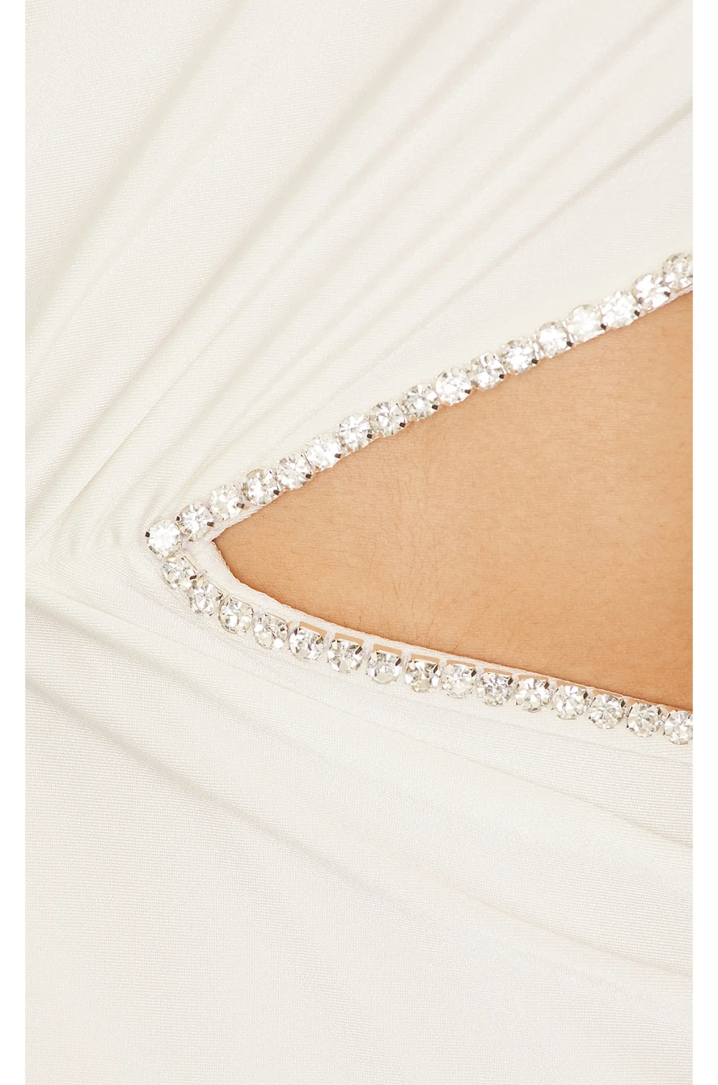 Polyamide blend.Imported.Dry clean recommended.Double lined.Hidden side zipper closure.One shoulder styling.Fabric overlay at side Side cut-out