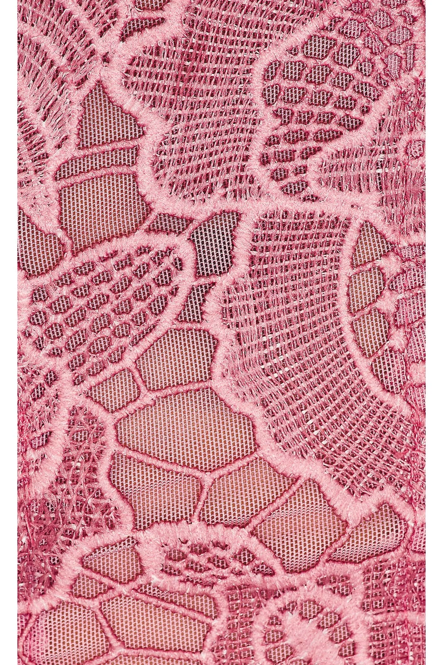 Self: 100% polyester Lining: 96% nylon 4% lycra.Made in India.Dry clean only.Double lined.Hidden side zipper closure.Padded cups.Midweight lace fabric.Neckline to hem measures approx 52" in length