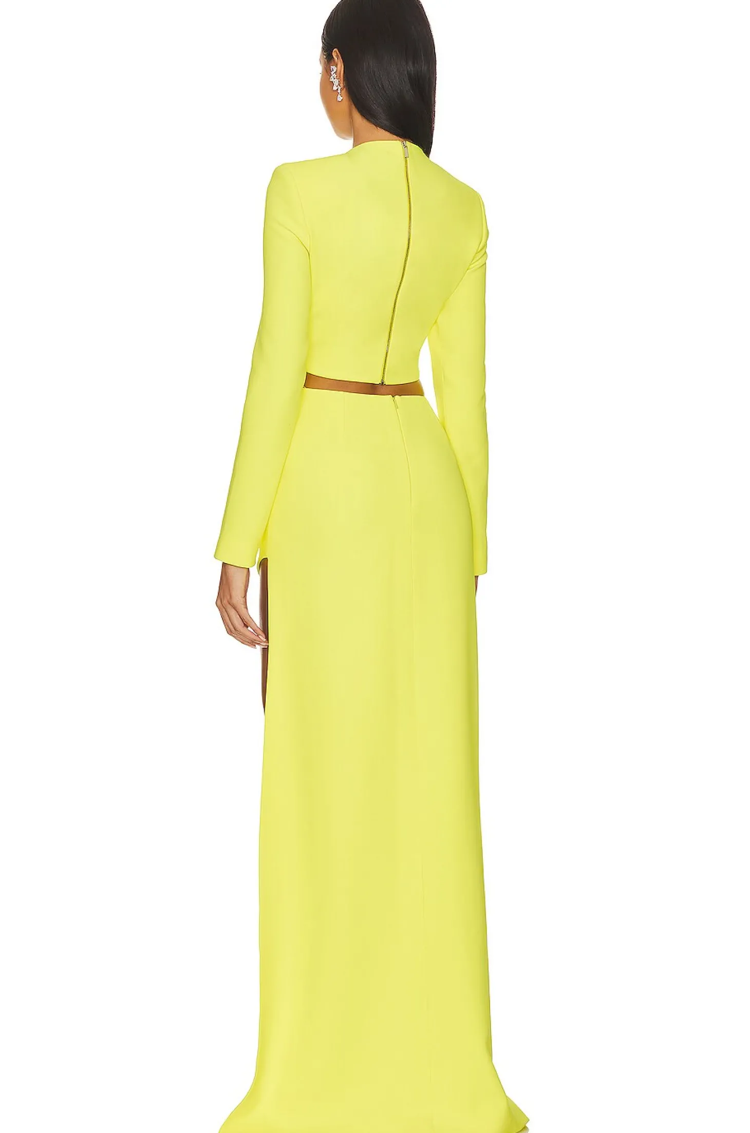 Polyester blend.Imported.Dry clean recommended.Fully lined.Exposed and hidden back zipper closures.Padded shoulder.Crepe fabric with crystal embellished starfish Item not sold as a set.Waist to shortest hem measures approx 11" and to longest hem approx 47" in length