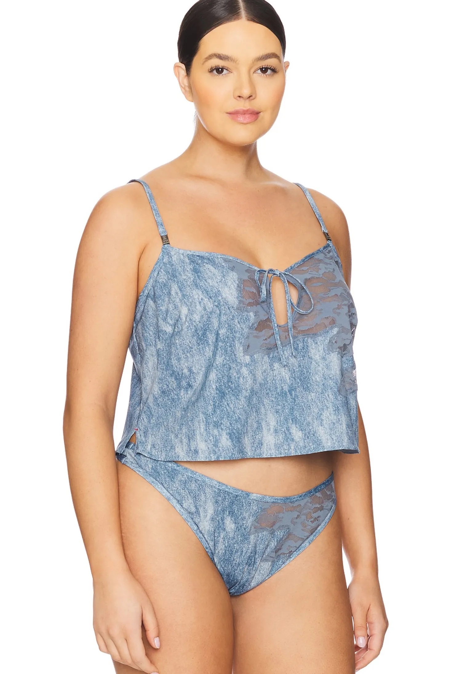 74% nylon 26% elastane.Made in Indonesia.Hand wash.Pull-on styling.Adjustable shoulder straps.Item not sold as a set