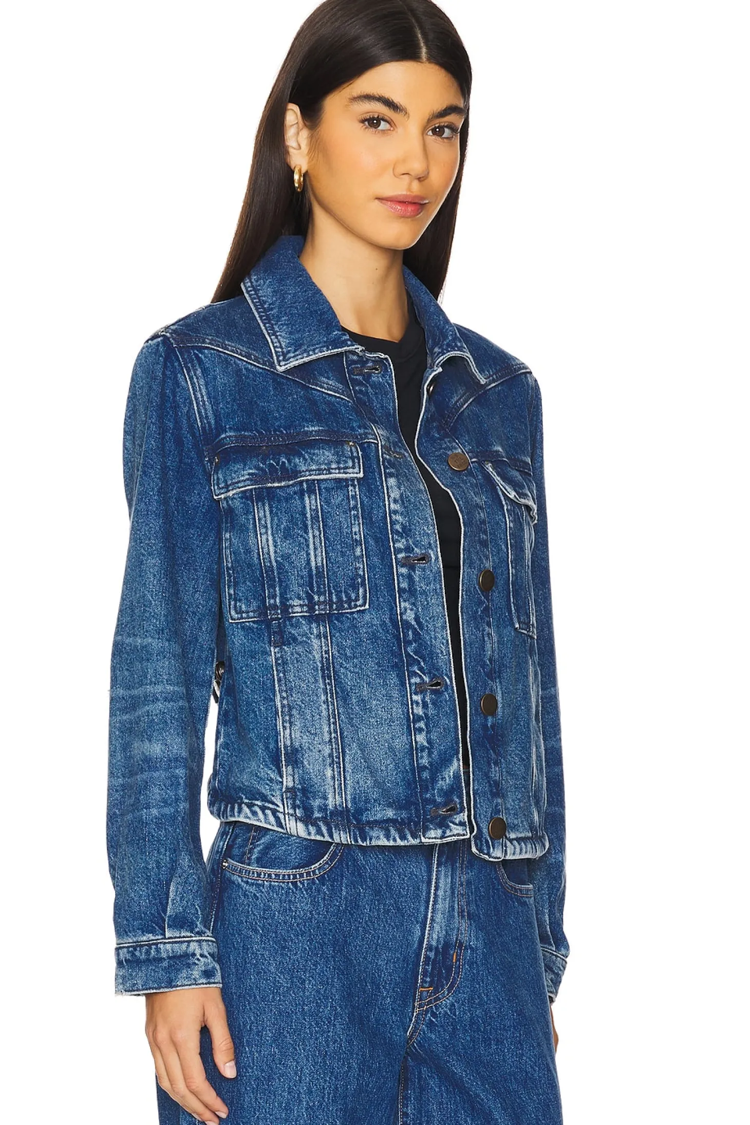 100% cotton.Made in Morocco.Machine wash.Front button closure.Side pockets and breast pockets.Buttoned cuffs.Rigid denim with curved hem