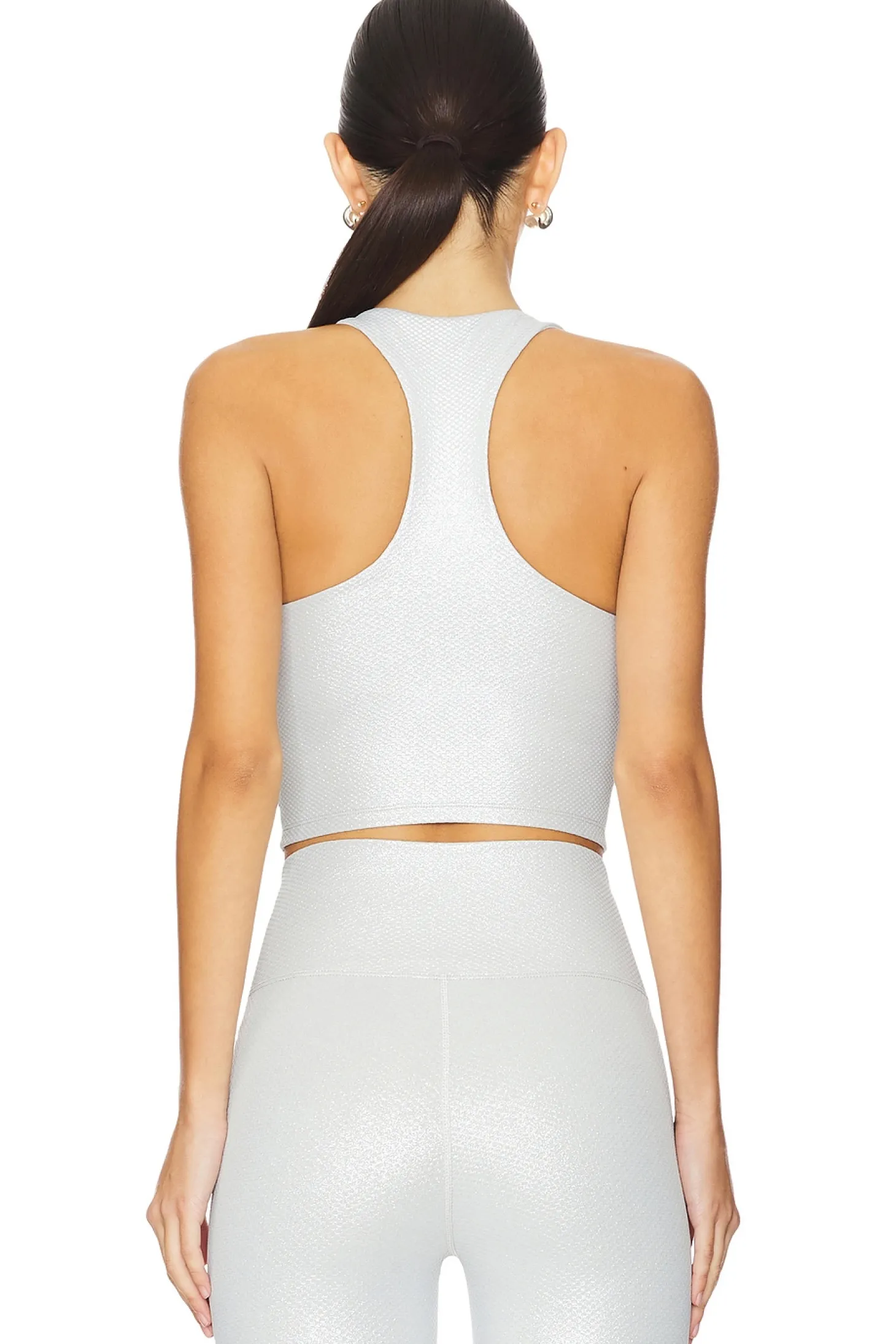 Knit textile.Imported.Hand wash recommended.Shelf bra with removable padded cups.Textured knit fabric design.Silver metallic coated fabric.Item not sold as a set