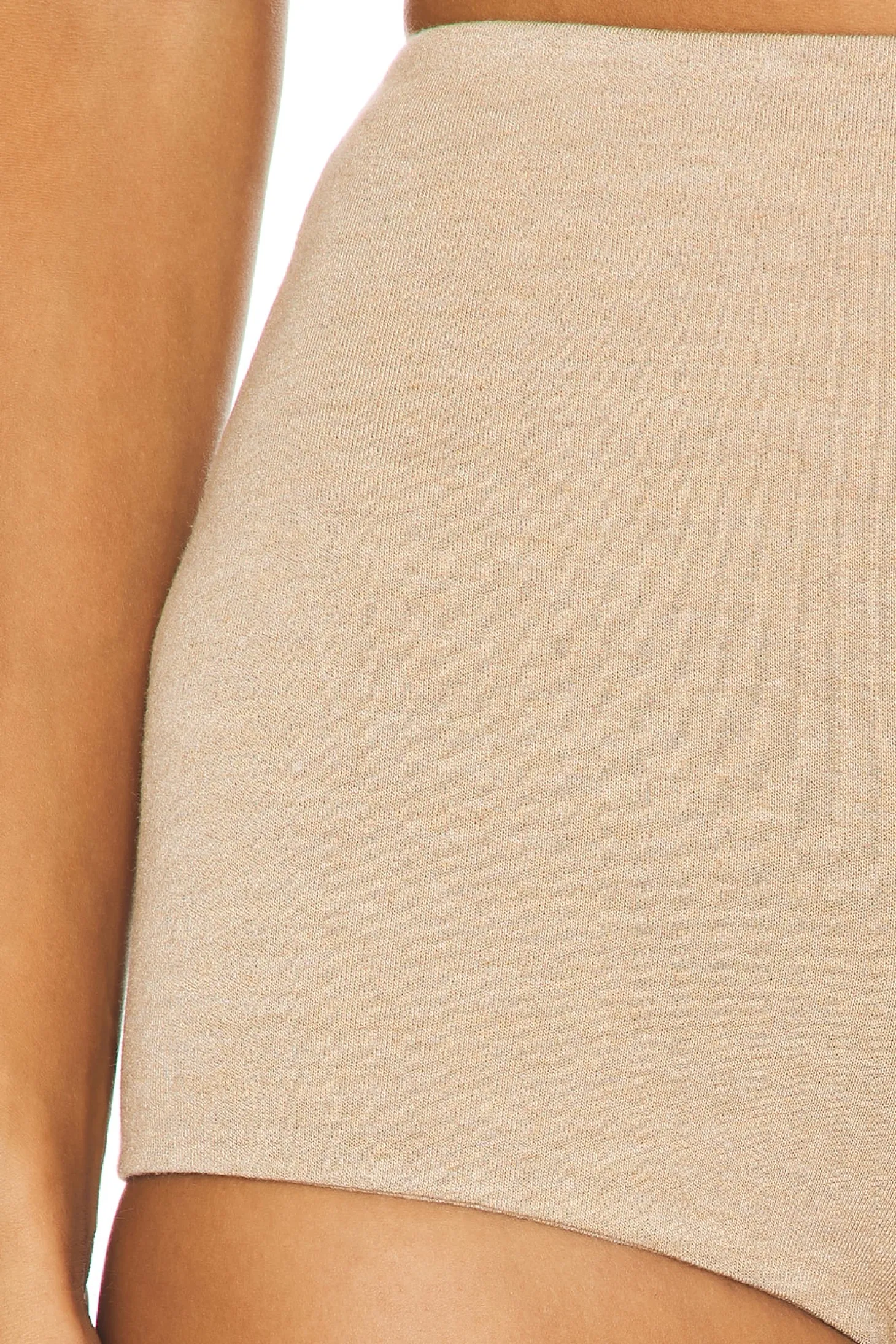 95% rayon 5% spandex.Made in China.Machine wash.Pull-on styling.High-waisted fit.Jersey fabric.Item not sold as a set.Shorts measure approx 8.5" in length