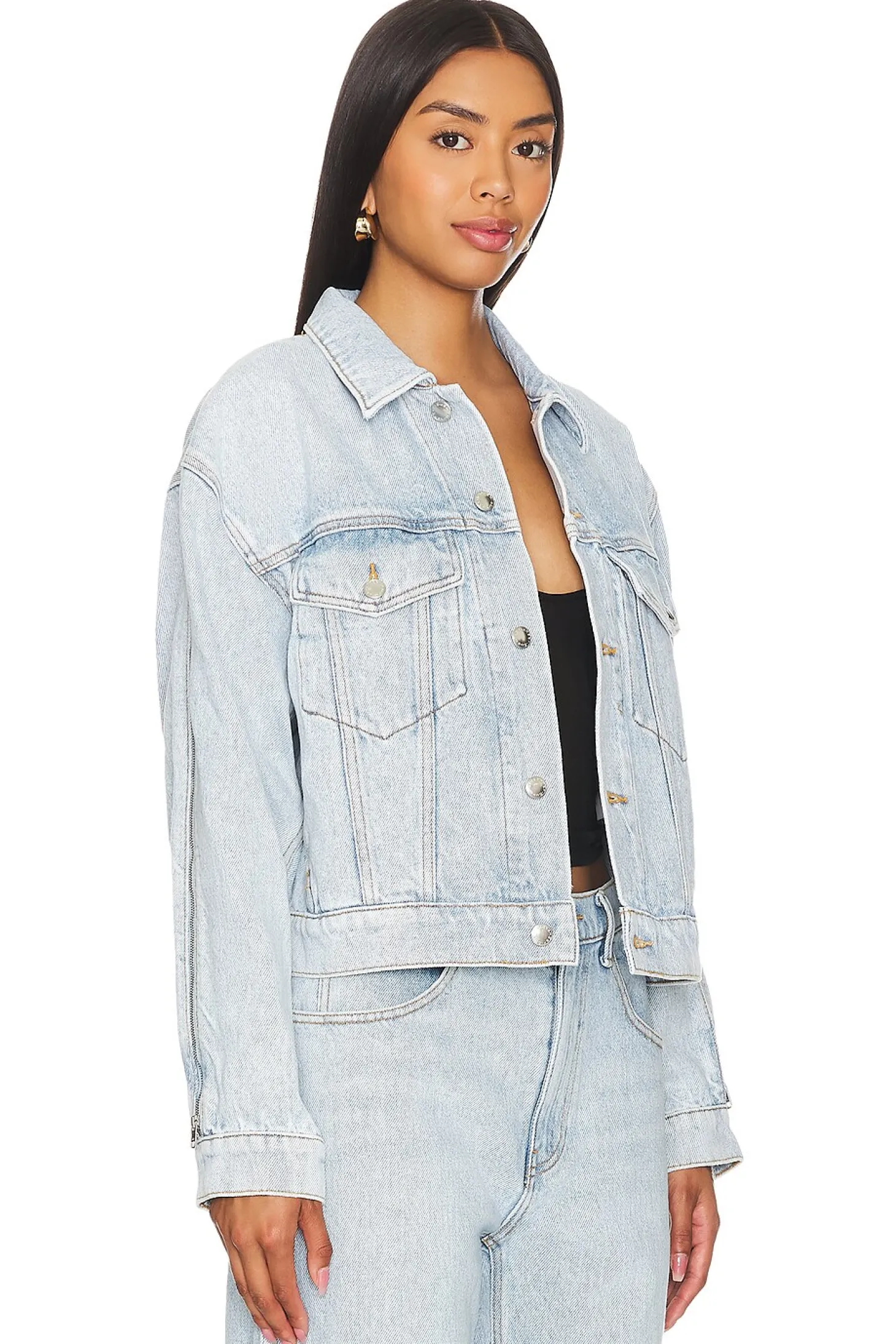 Zipped Sleeve Rounded Trucker Jacket